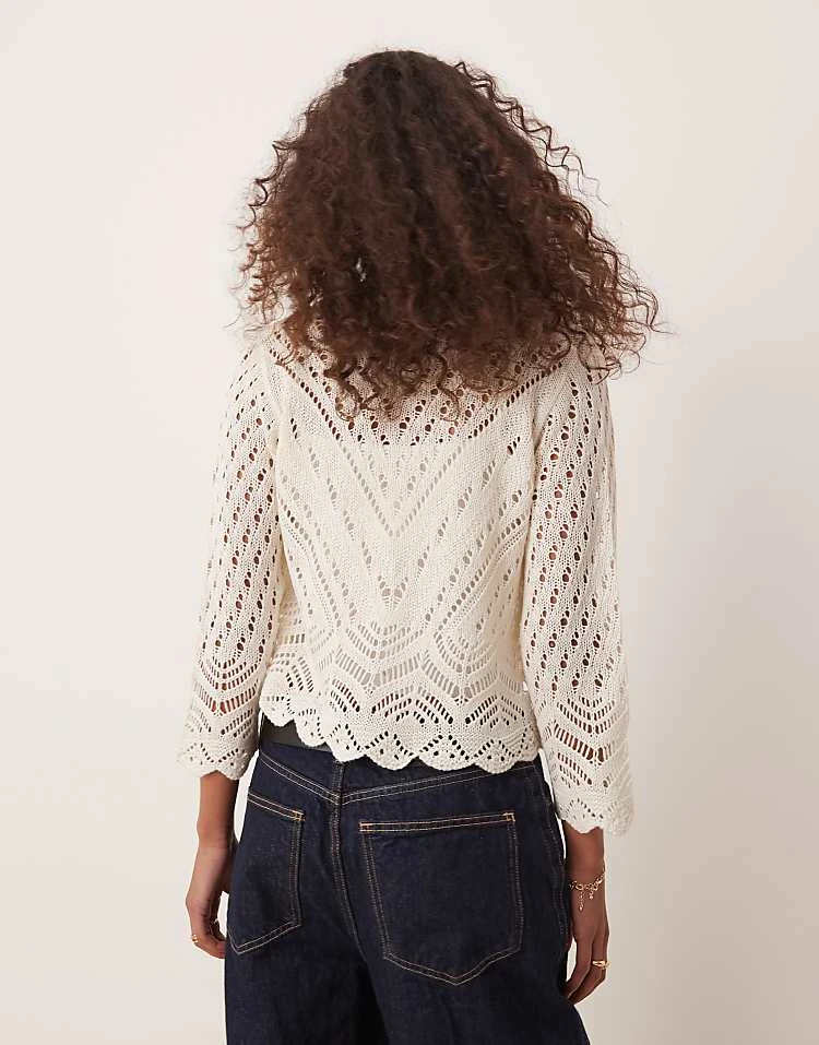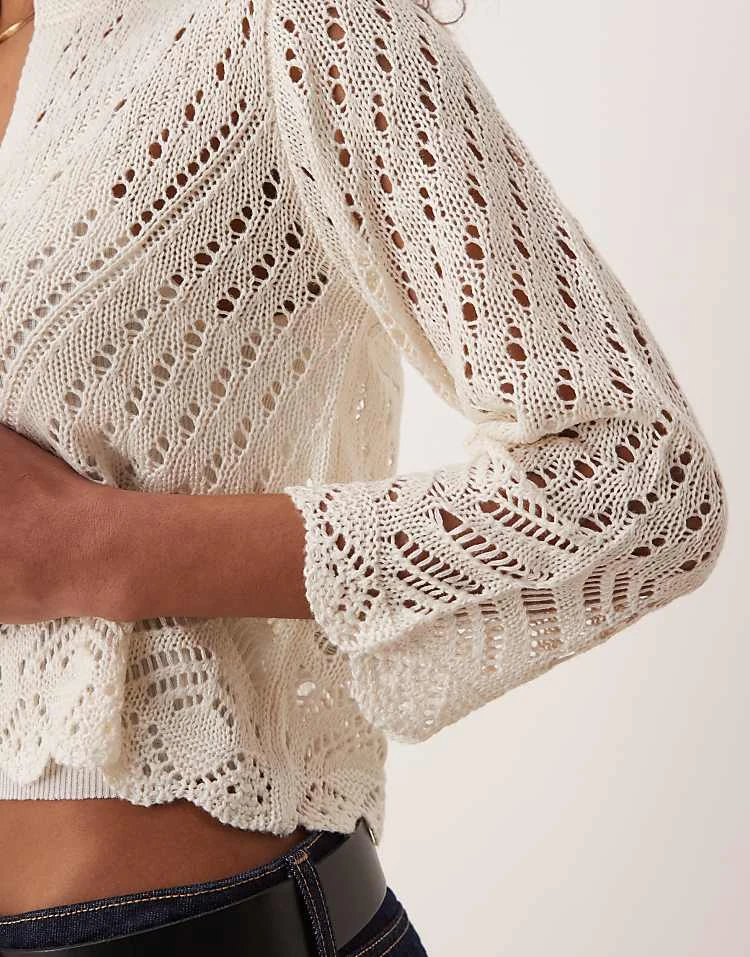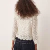 JDY 3/4 Sleeve Crop Broderie Cardigan In Stone For Women
