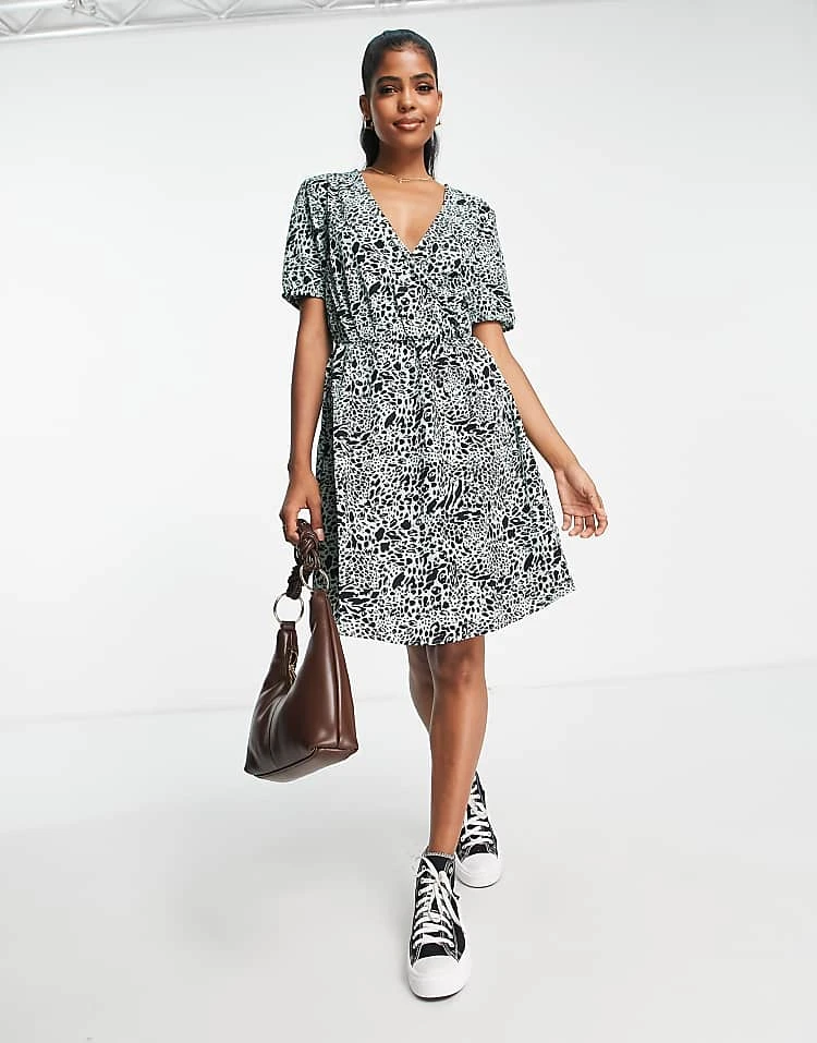 JDY Anetty Wrap Mini Dress In Black For Women Basil Leo