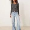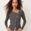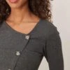 JDY Asymetric Ribbed Button Detail Top In Dark Grey For Women