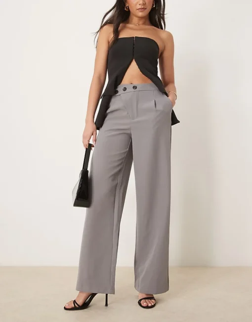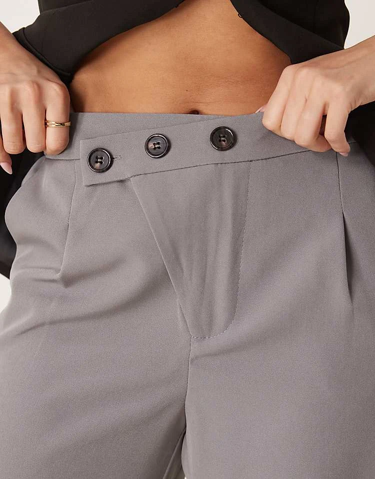 JDY Asymmetric Button Wide Leg Trousers In Grey For Women