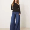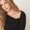 JDY Asymmetric Neck Slinky Long Sleeve Top In Black For Women