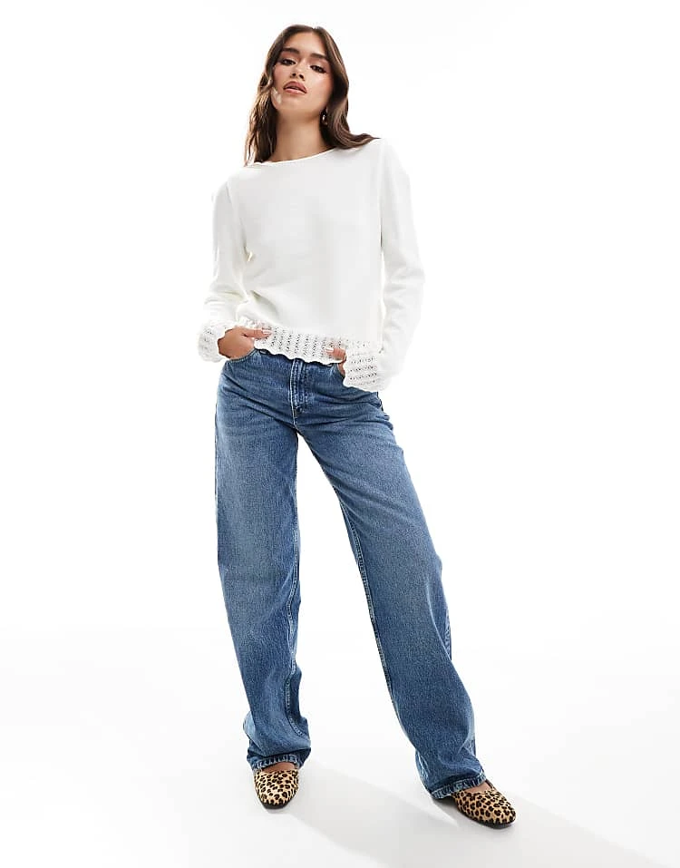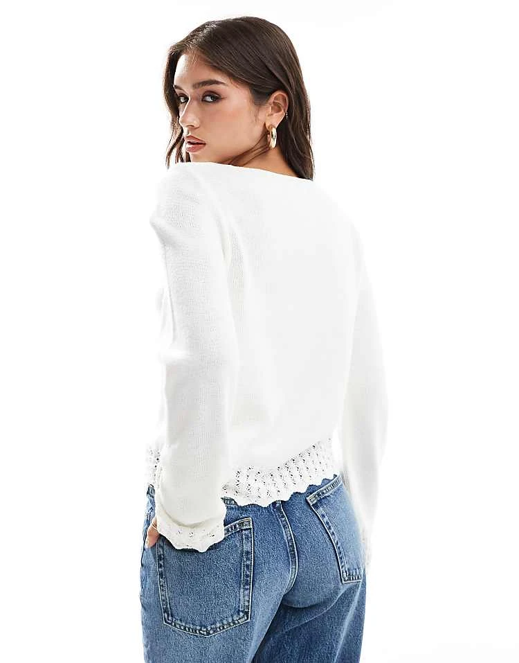JDY Boat Neck Hem Detail Jumper In Cream For Women