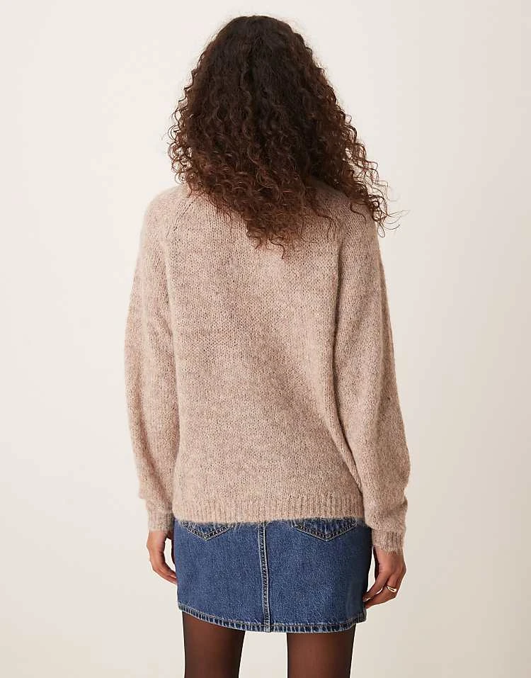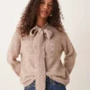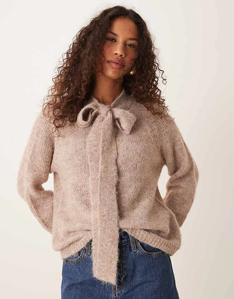 JDY Bow Detail Knitted Jumper In Beige Melange For Women