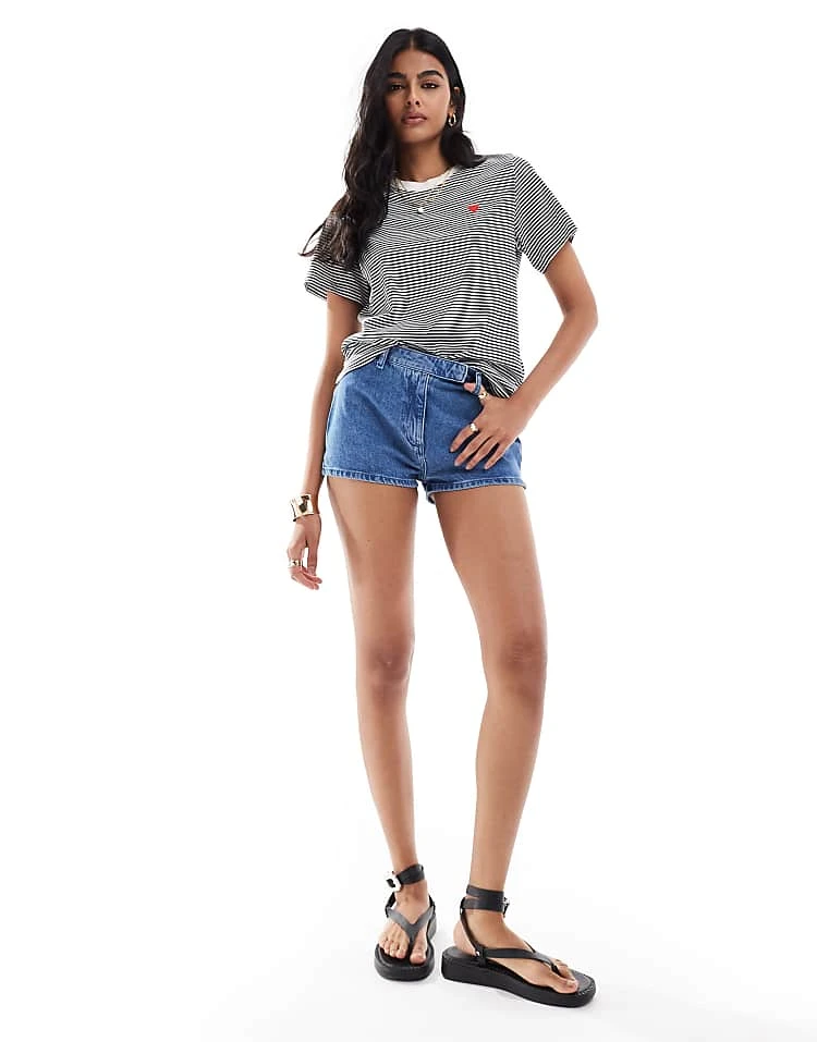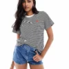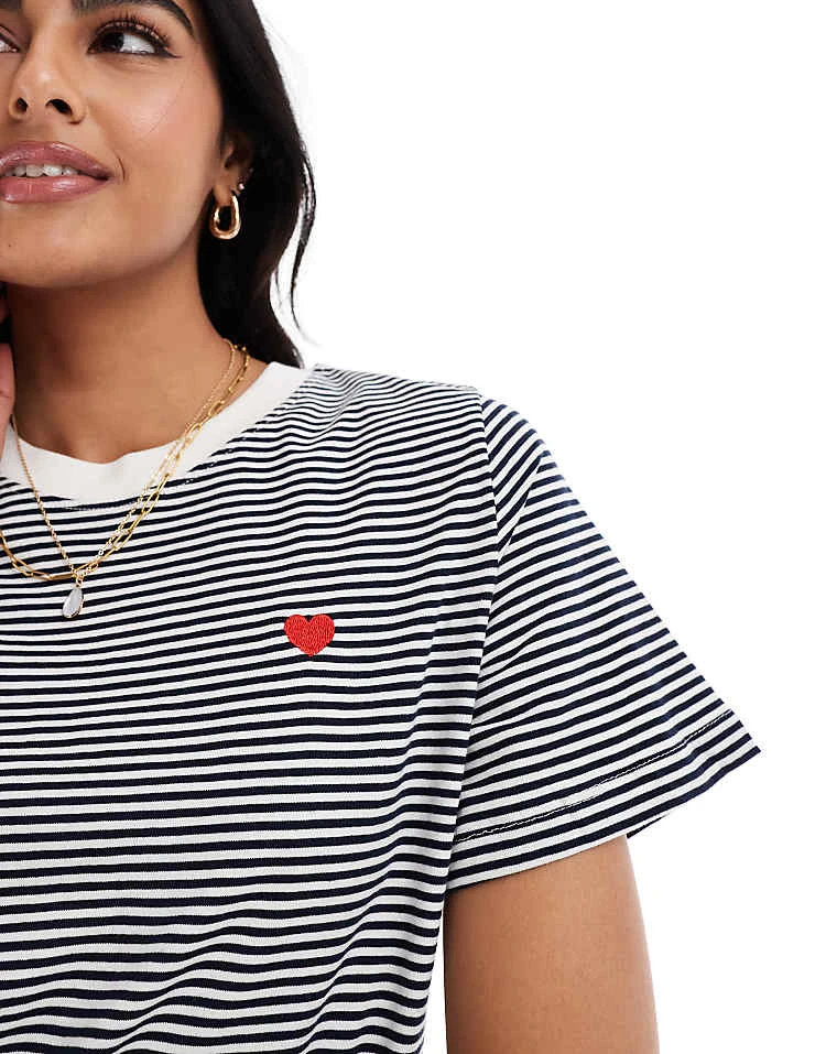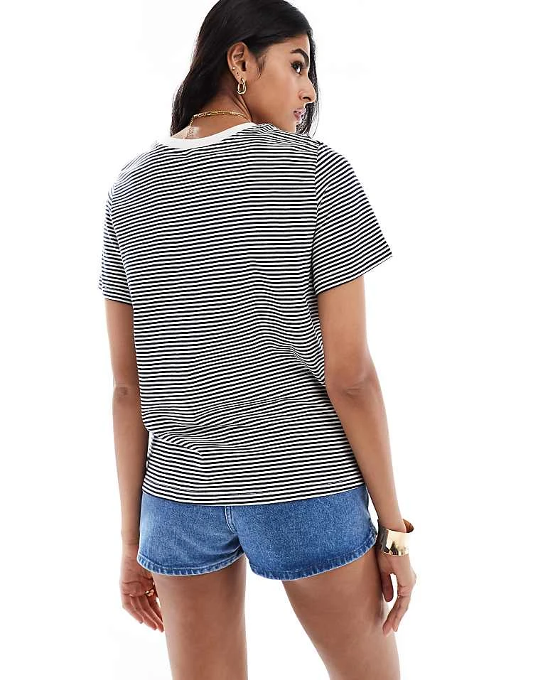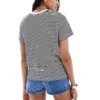 JDY Boxy Fit T-shirt In Cream & Navy Stripe For Women White