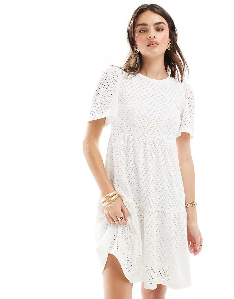 JDY Broderie Mini Dress In White For Women