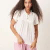 JDY Broderie Tie Detail Blouse In White For Women