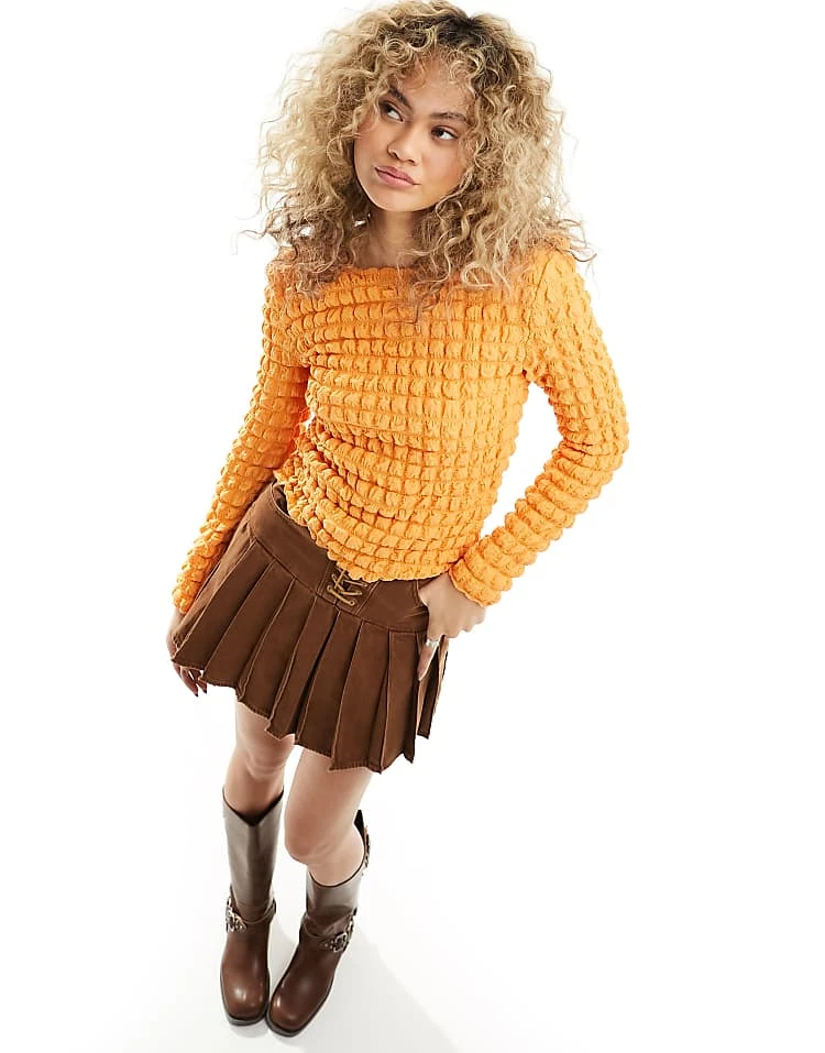 JDY Bubble Top In Orange For Women Tangerine