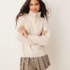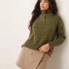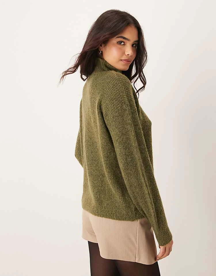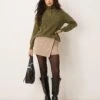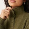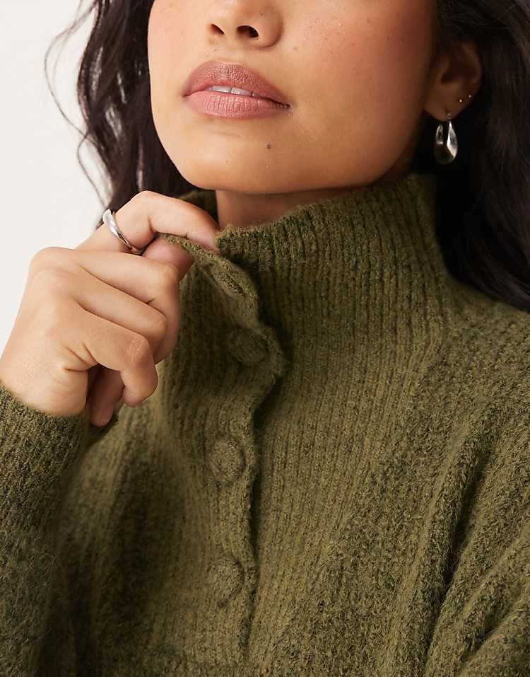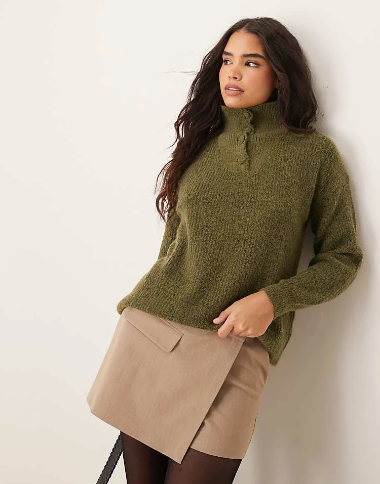 JDY Button Detail High Neck Knitted Jumper In Khaki For Women