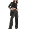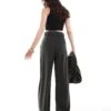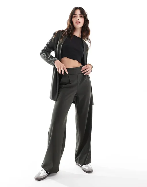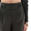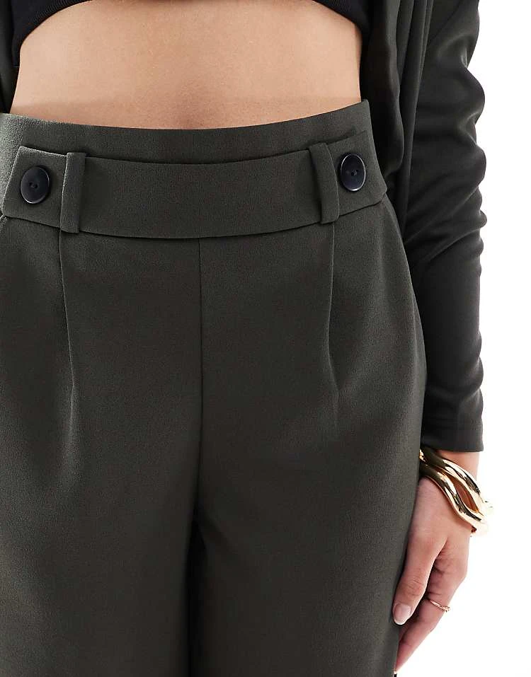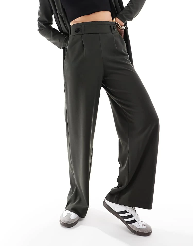 JDY Button Detail Wide Leg Dad Trousers In Dark Green For Women