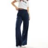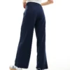 JDY Button Detail Wide Leg Dad Trousers In Navy For Women