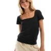 JDY Cap Sleeve Square Neck Top In Black For Women