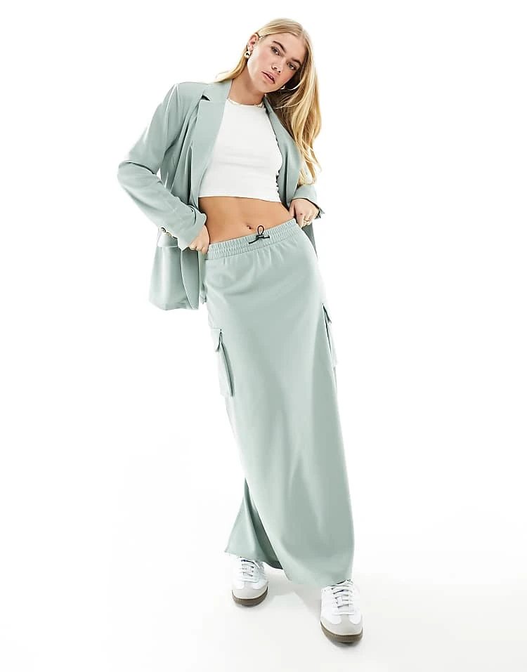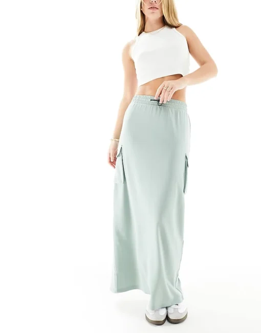 JDY Cargo Pocket Maxi Skirt In Sage Green For Women Light Green