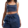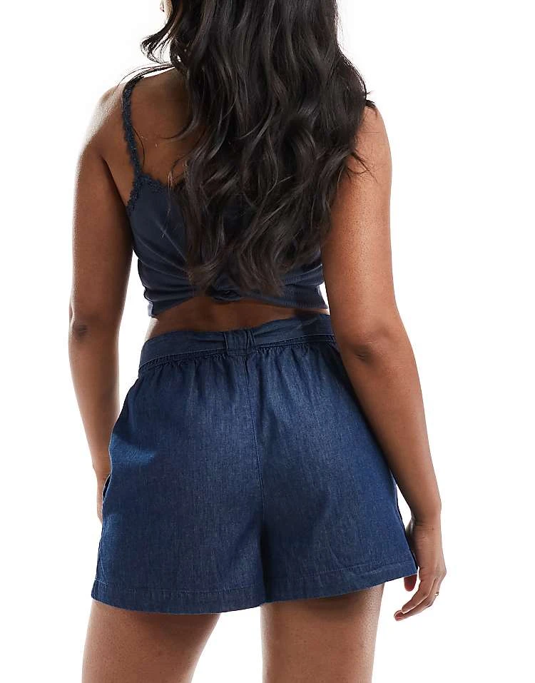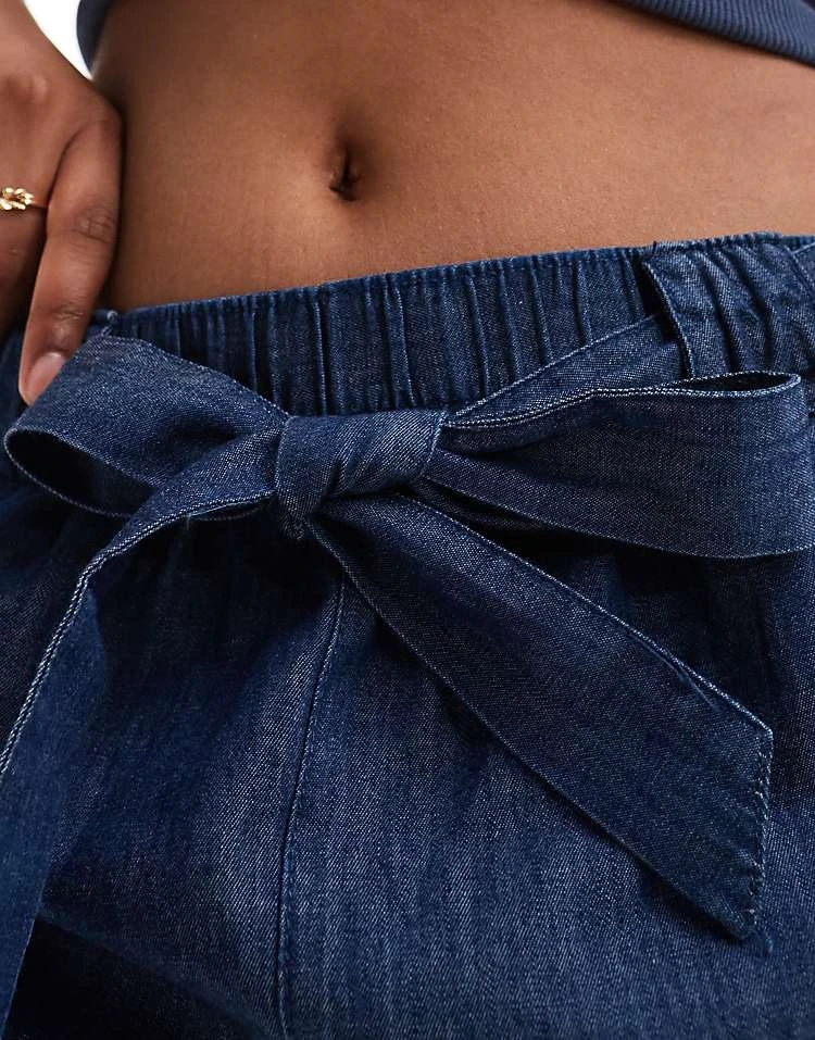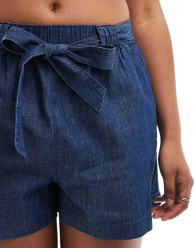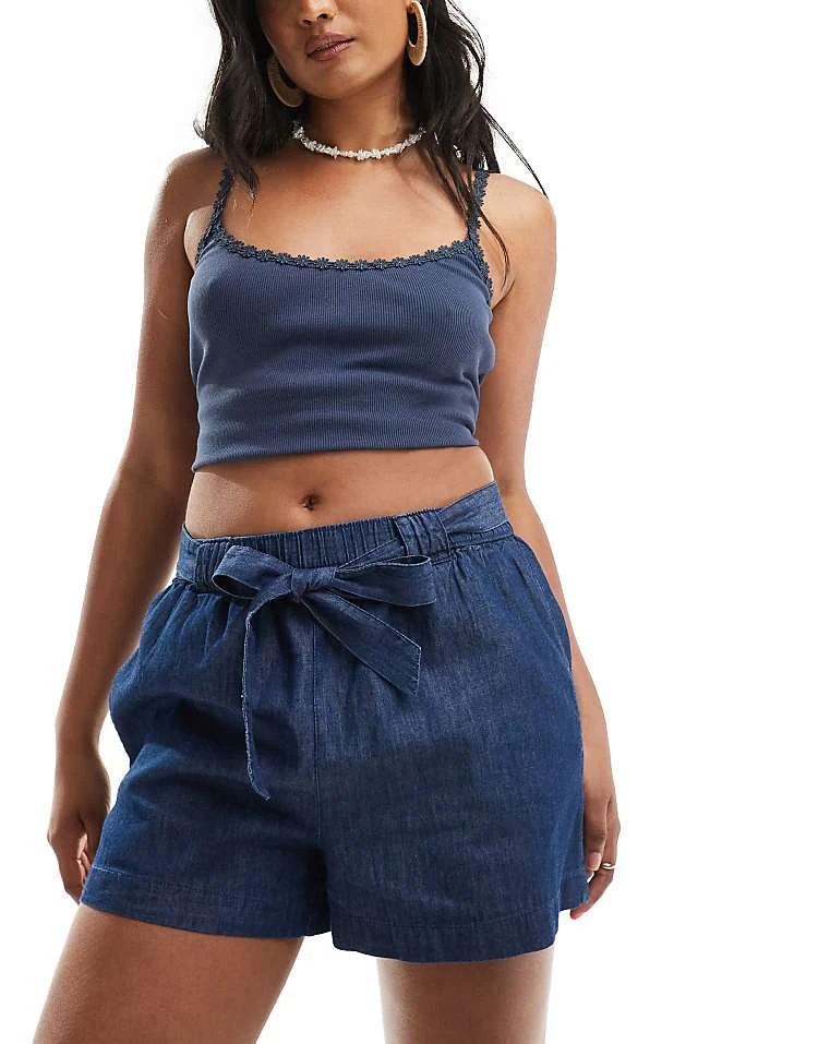 JDY Chambray Tie Front Short In Indigo For Women Mid Blue