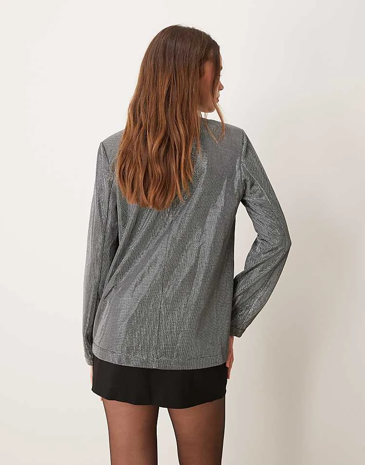 JDY Collarless Blazer In Metallic Silver For Women