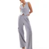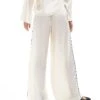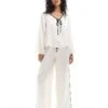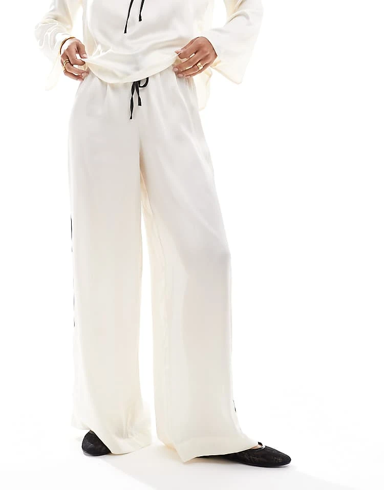 JDY Contrast Detail Satin Midi Trouser Co-ord In Cream For Women