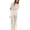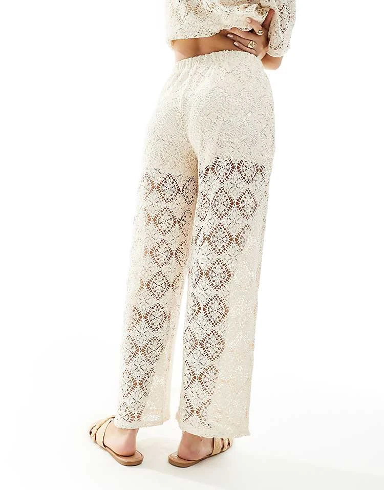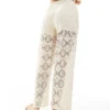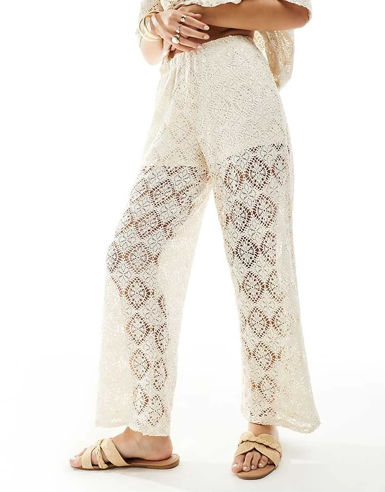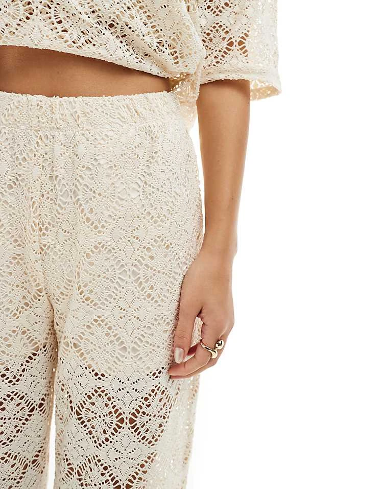 JDY Crochet Wide Leg Trouser Co-ord With Short Inscert In Stone For Women