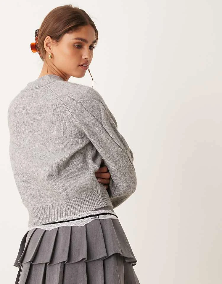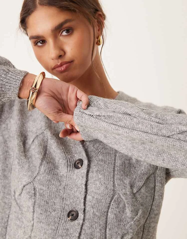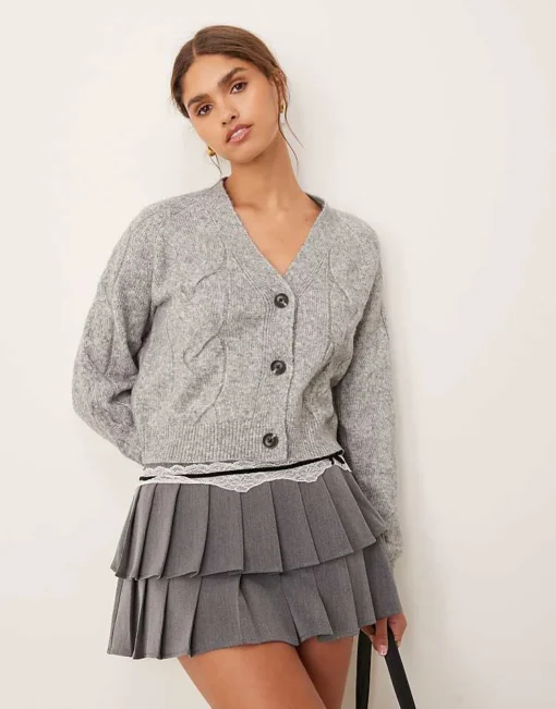 JDY Cropped Cable Knit Cardigan In Grey For Women