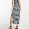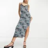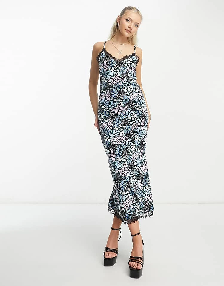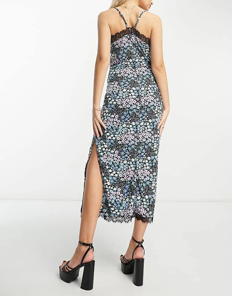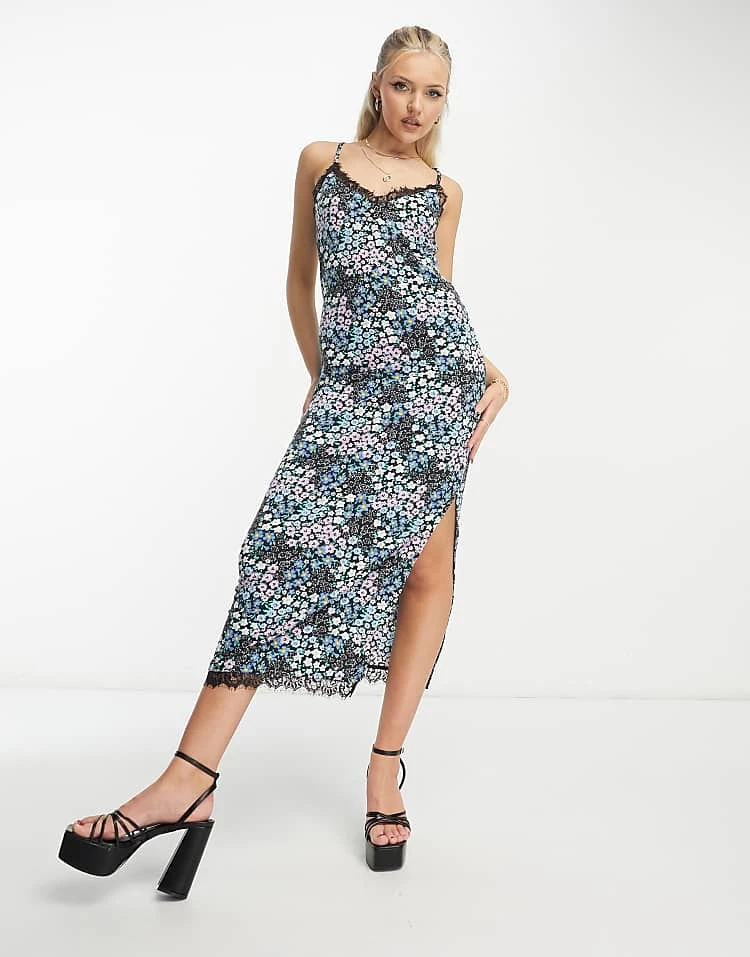 JDY Exclusive Lace Trim Midi Dress With Side Split In Blue Ditsy Floral For Women Ditsy Flower