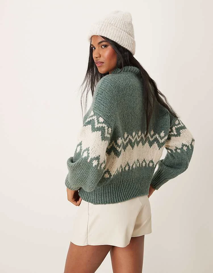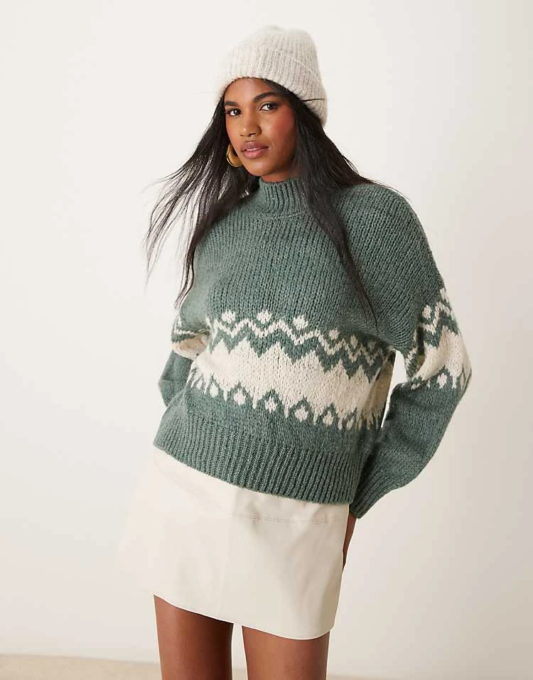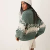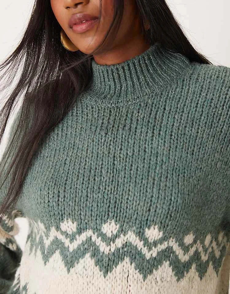 JDY Fair Isle Knitted Jumper In Teal For Women