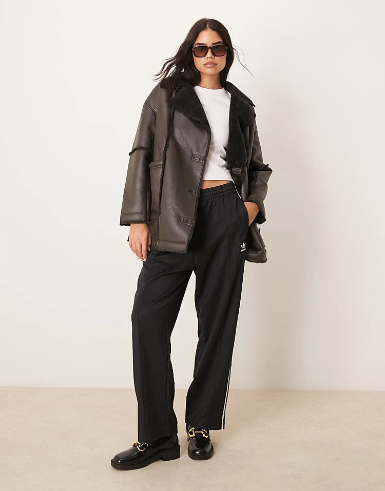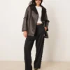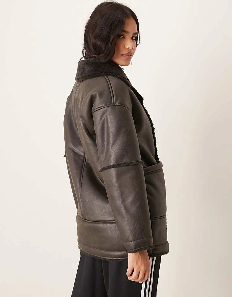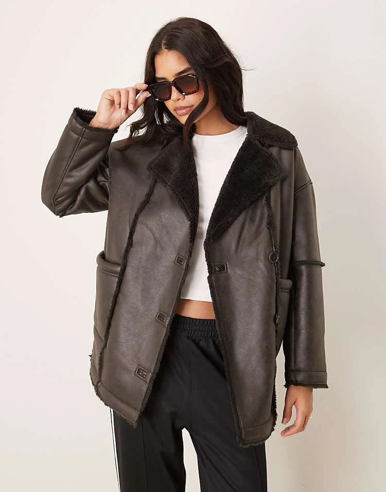 JDY Faux Shearling Coat In Chocolate Brown For Women