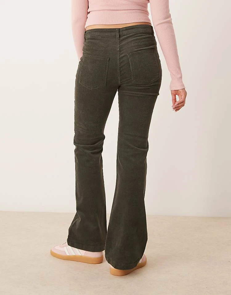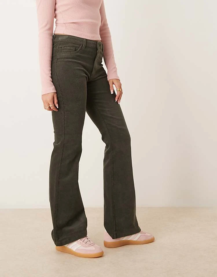 JDY Flare Cord Trousers In Peat – DGREEN For Women Dark Green