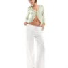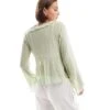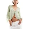 JDY Frill Chiffon Tie Front Top In Sage Green For Women