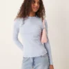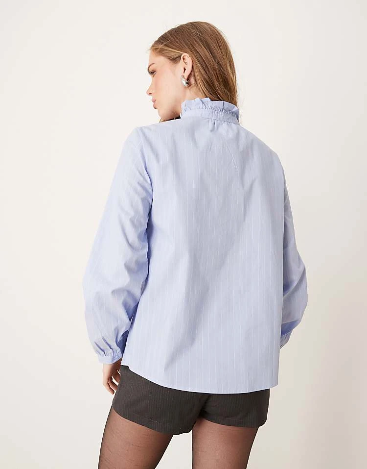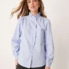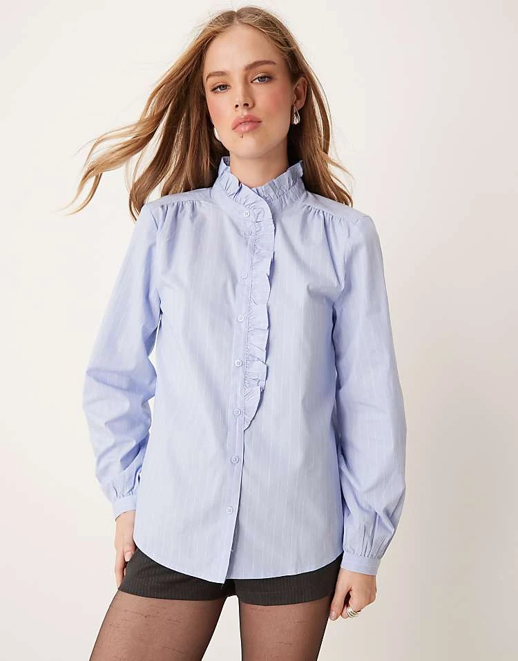 JDY Frill Detail Shirt In Blue Pinstripes For Women Light Blue