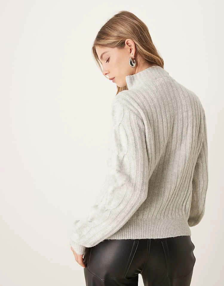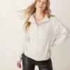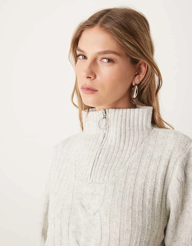 JDY Half Zip Cable Pullover Jumper In Light Grey For Women