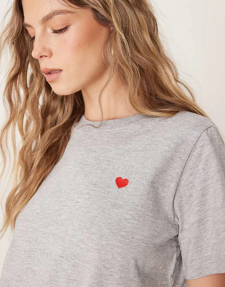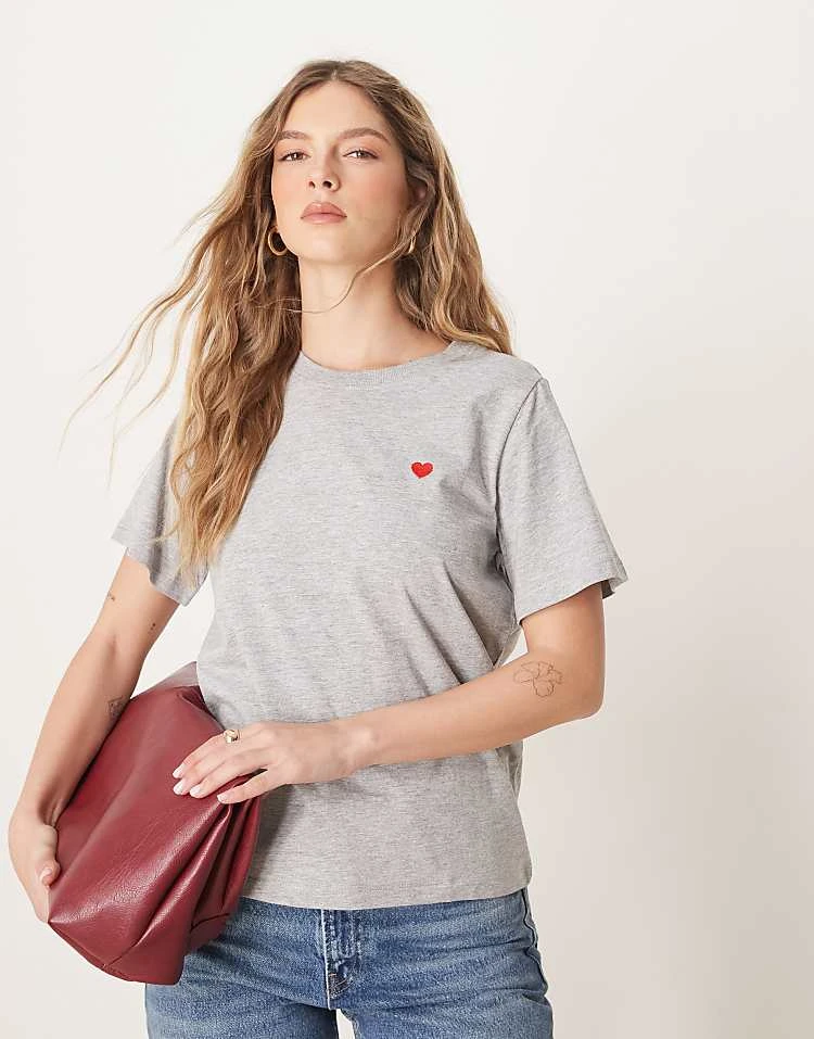 JDY Heart Print T-shirt In Light Grey For Women