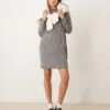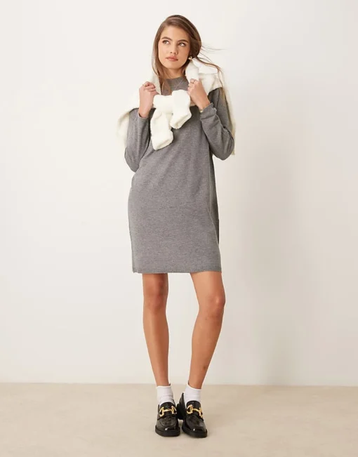 JDY High Neck Knitted Mini Dress In Grey For Women Mid Grey Melange