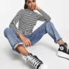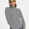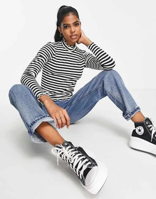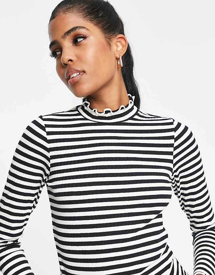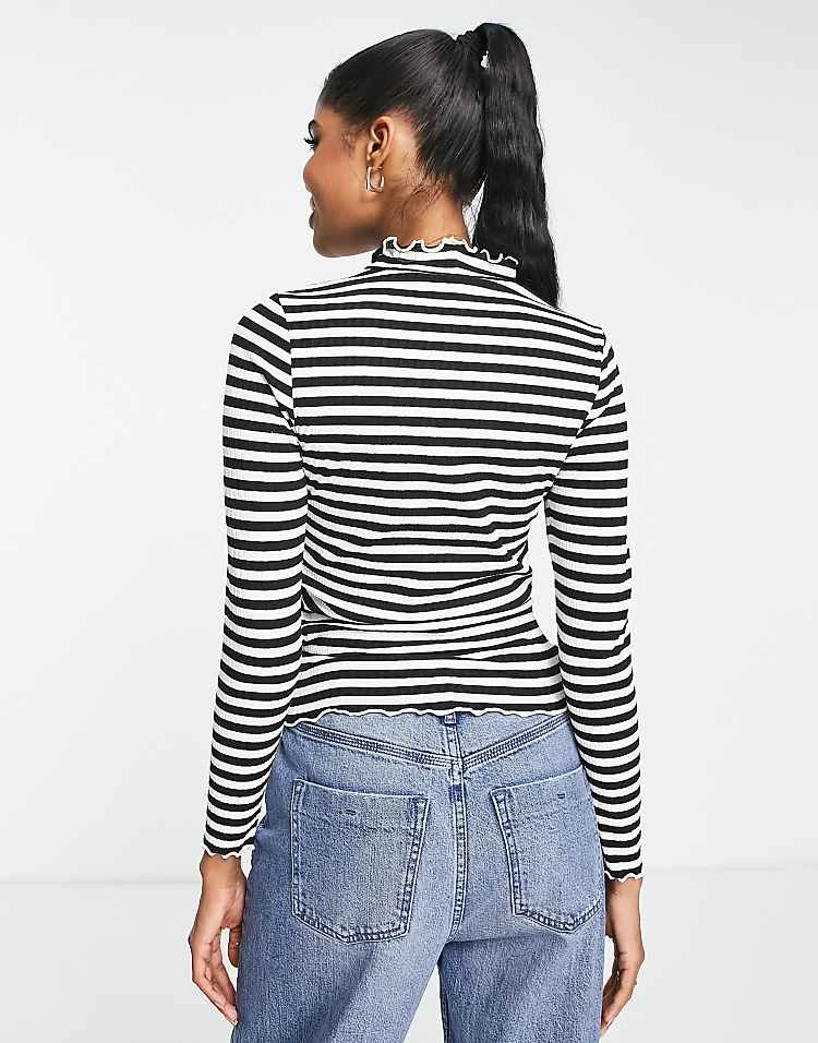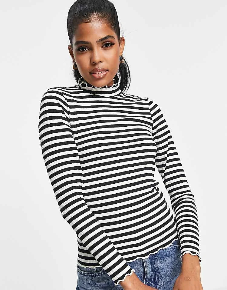 JDY High Neck Lettuce Edge Top In Black Stripe For Women