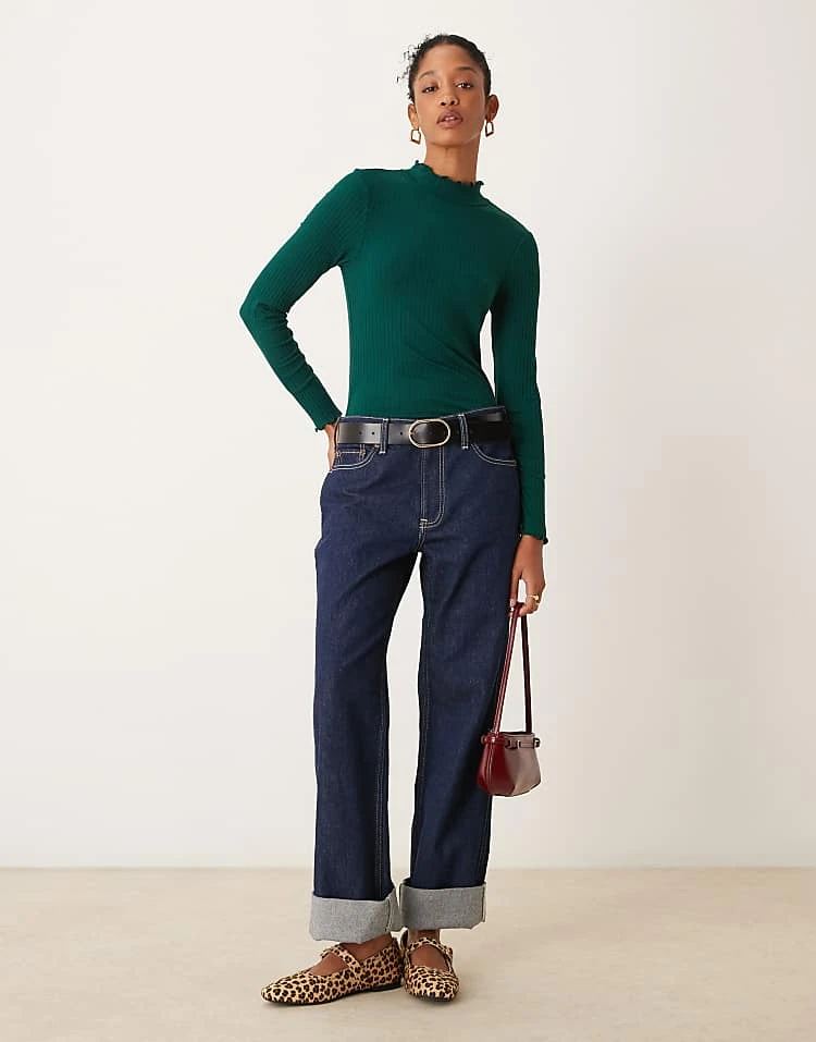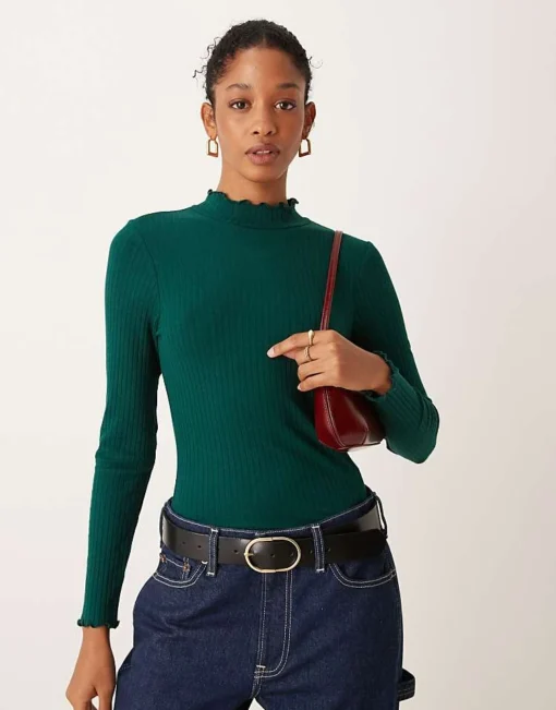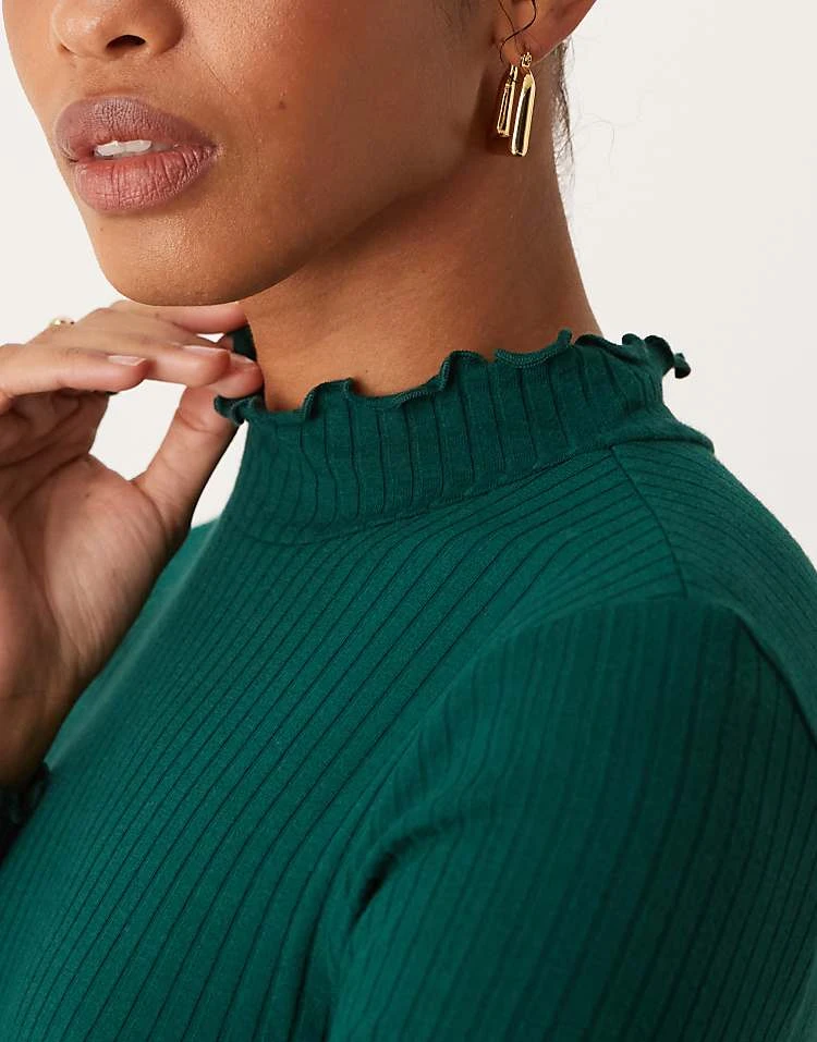 JDY High Neck Long Sleeve Top In Dark Green For Women
