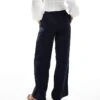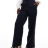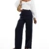 JDY High Waist Pull On Linen Look Trouser In Navy For Women Blue