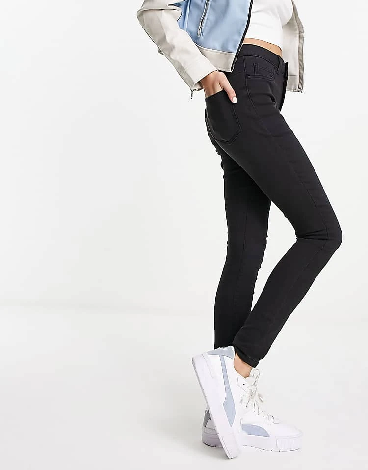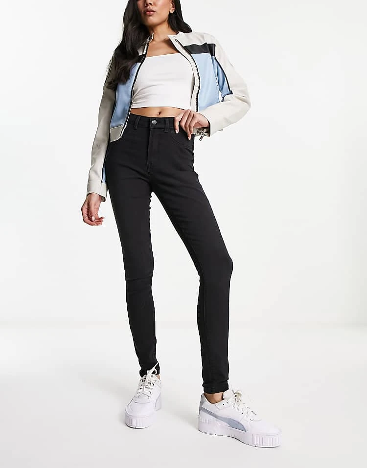 JDY High Waist Skinny Jeans In Washed Black For Women