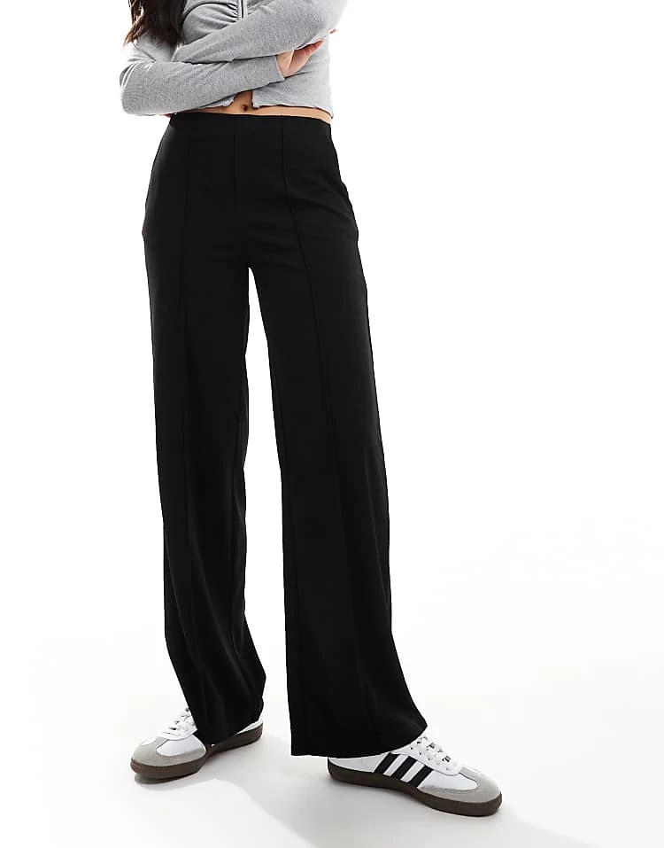 JDY High Waist Trouser With Front Seam Detail In Black For Women