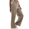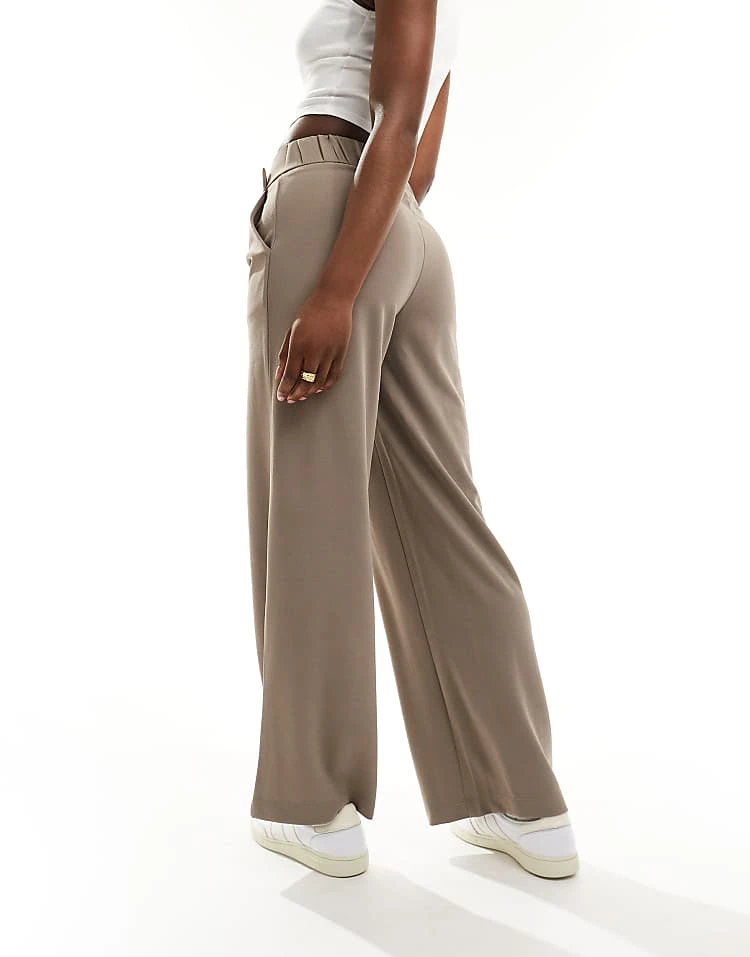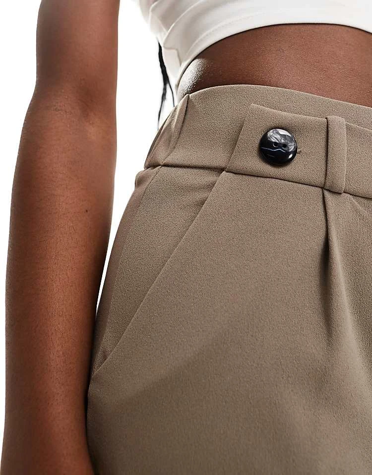 JDY High Waisted Crop Wide Fit Tailored Trousers In Taupe For Women Driftwood Grey