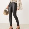 JDY High Waisted Faux Leather Trousers In Black For Women