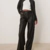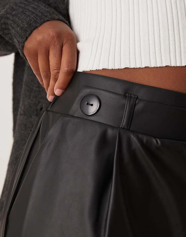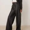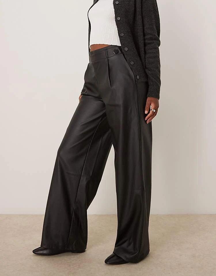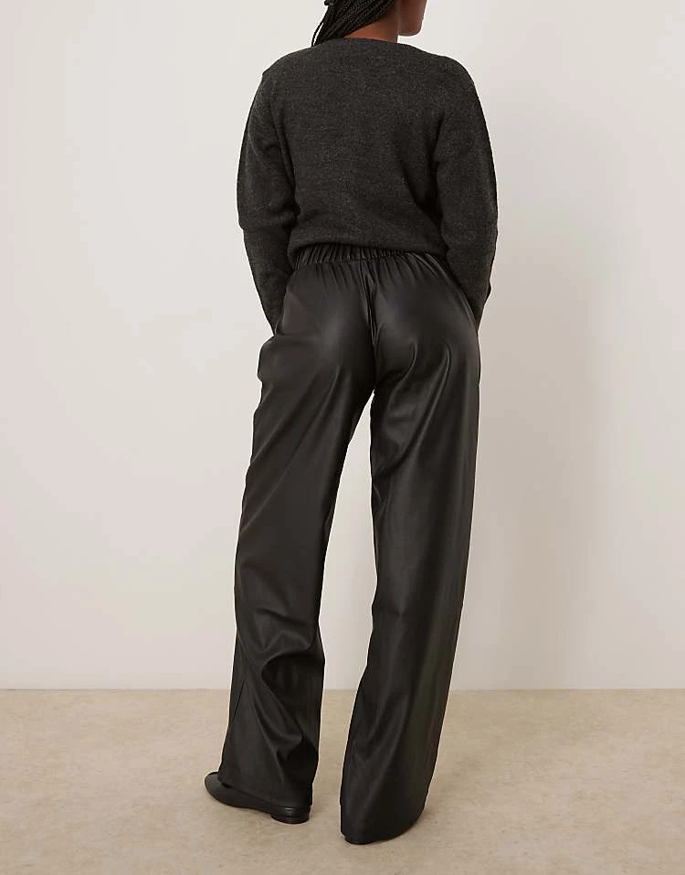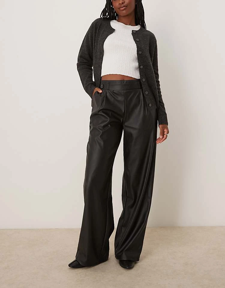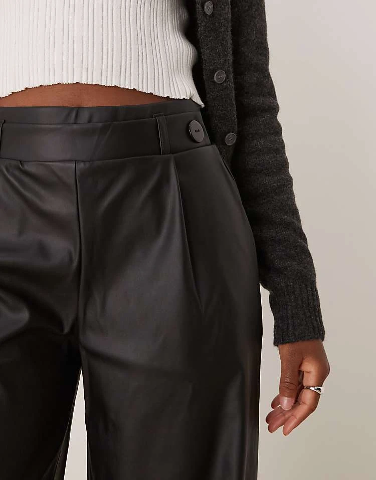 JDY High Waisted Wide Leg Faux Leather Trousers In Black For Women