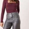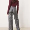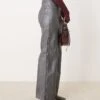 JDY High Waisted Wide Leg Metallic Jeans In Grey For Women