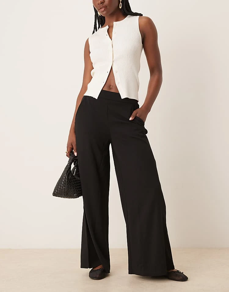 JDY High Wasted Wide Leg Trouser In Black For Women