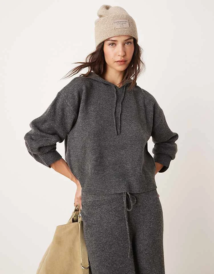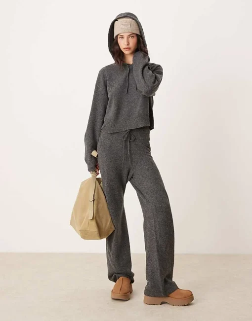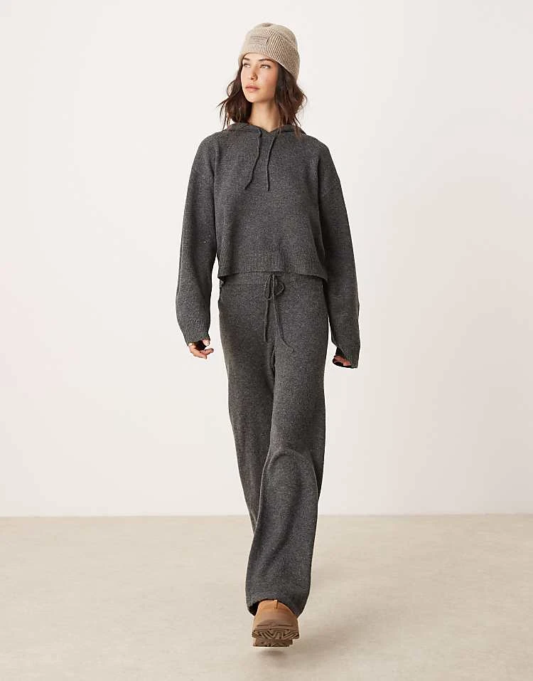 JDY Knitted Hoodie & Trousers Co-ord In Charcoal