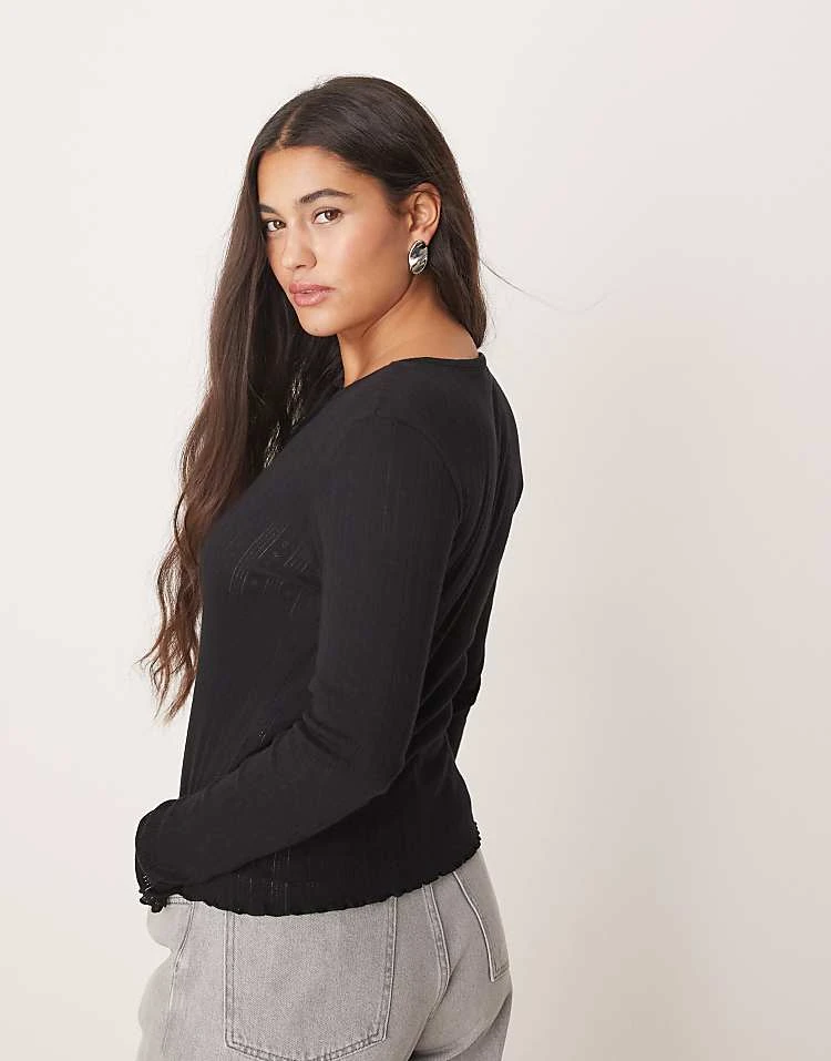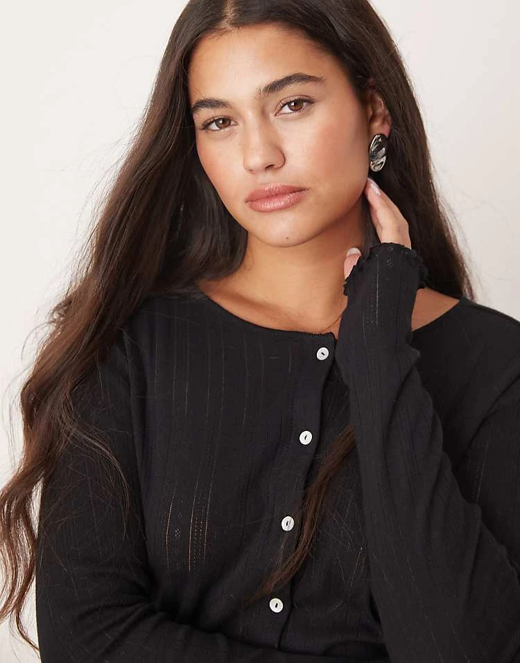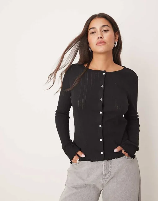 JDY Lettuce Edge Lightweight Cardigan In Black For Women
