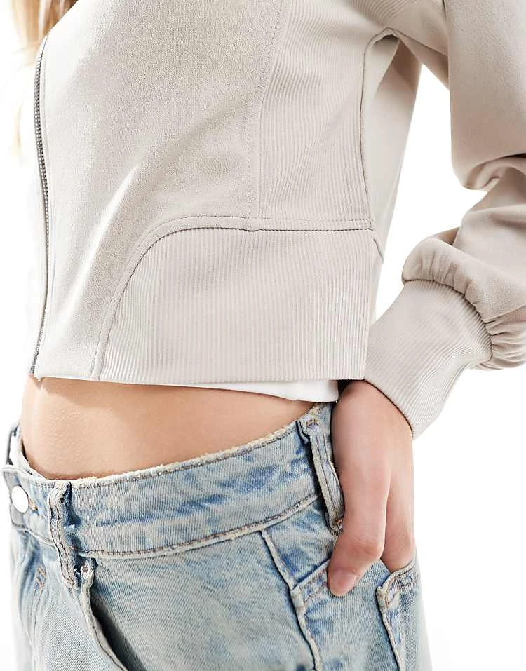 - Ribbed cuffs and hem