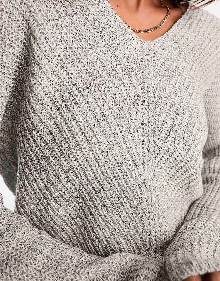 JDY Lightweight V Neck Jumper In Grey For Women