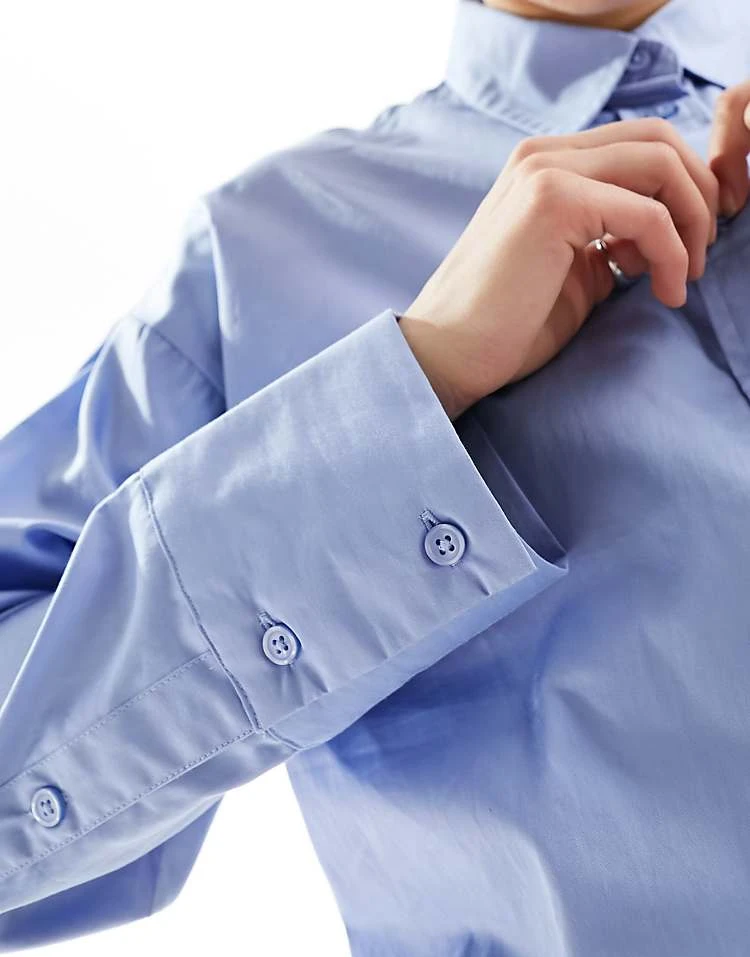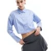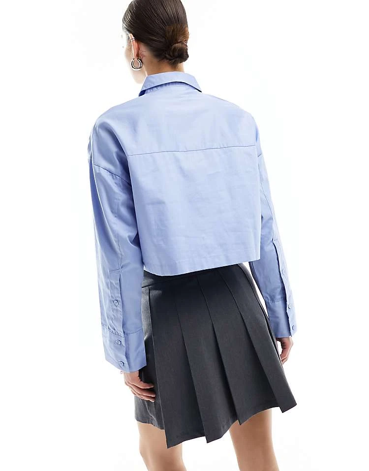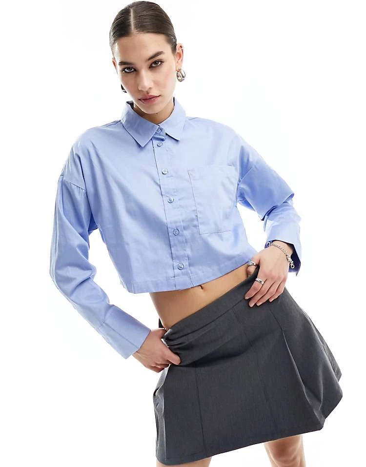 JDY Long Sleeve Cropped Shirt In Blue For Women Provence