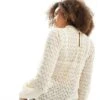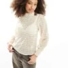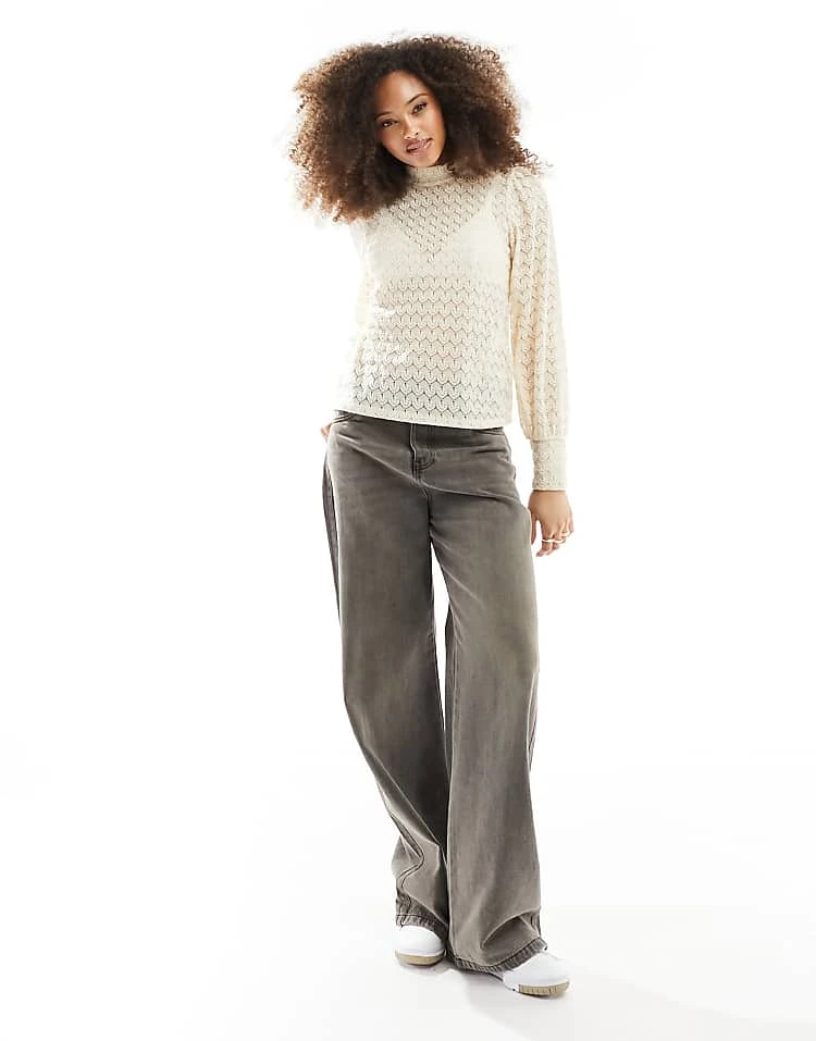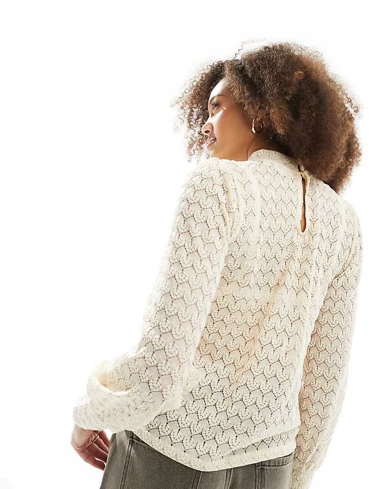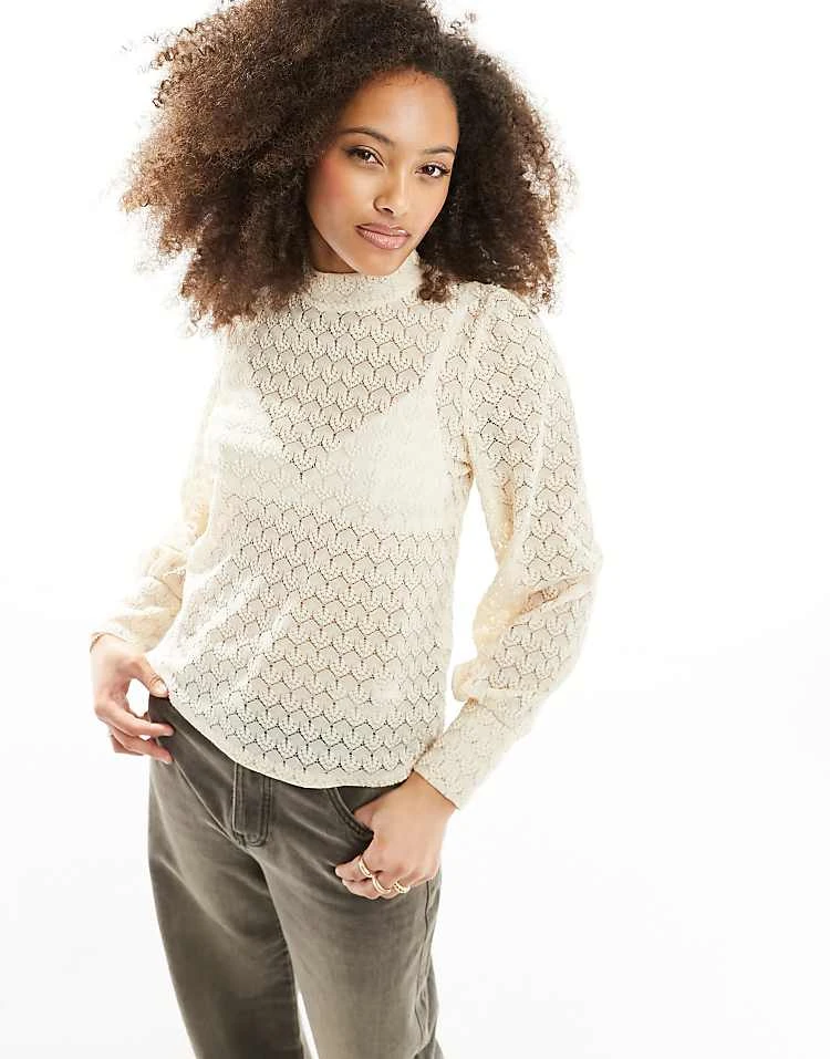 JDY Long Sleeve Lace Top In Sandshell For Women
