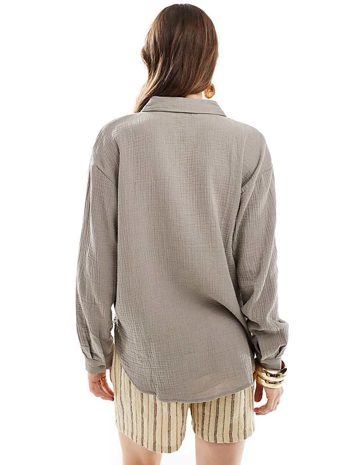 JDY Long Sleeve Loose Shirt In Beige For Women