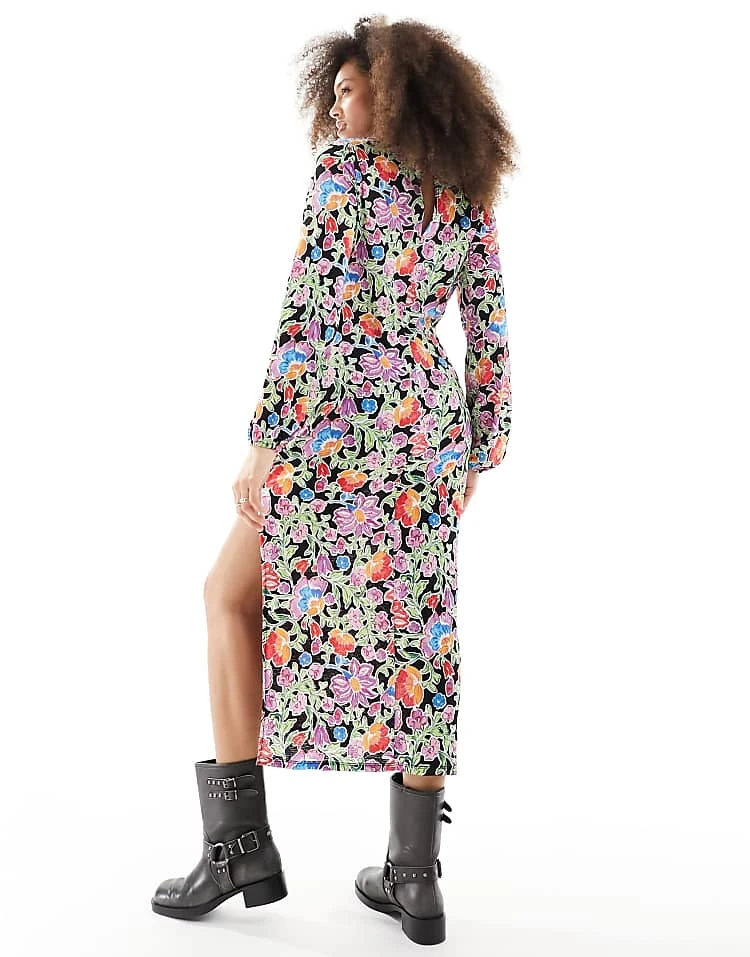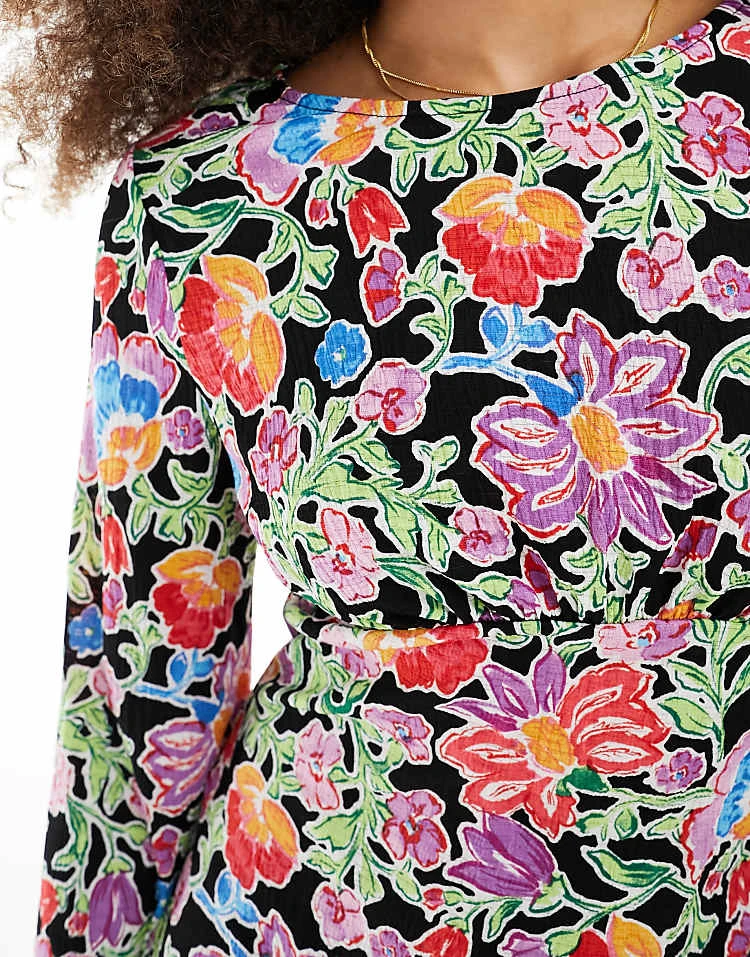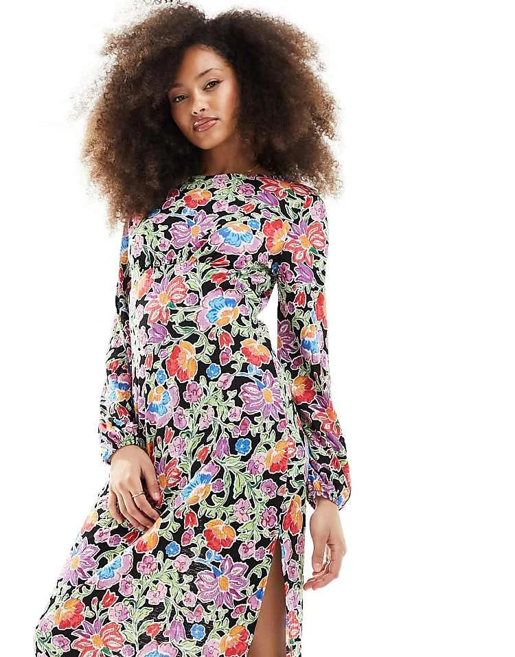JDY Long Sleeve Maxi Dress With Multi Coloured Flower For Women Black Aop