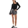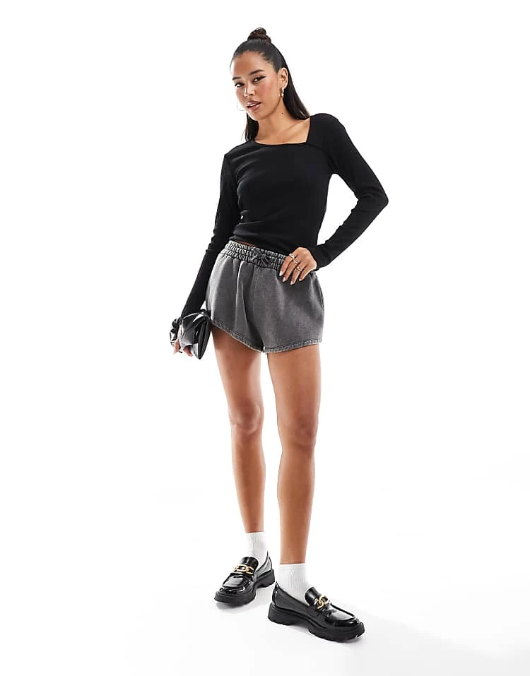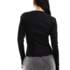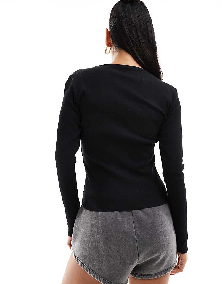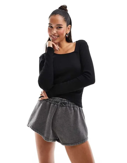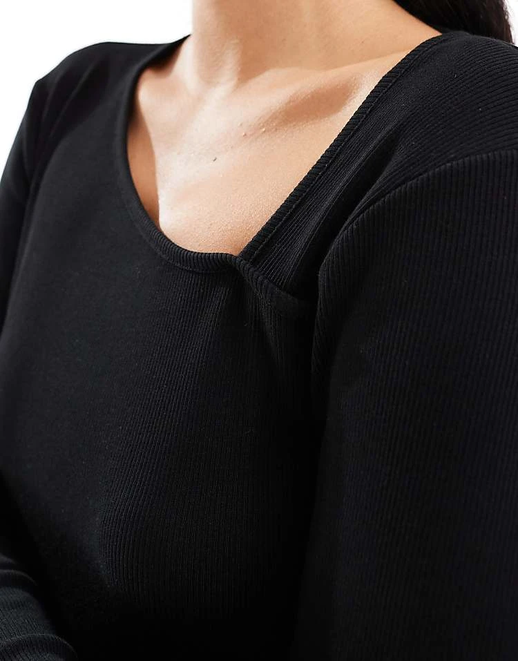 JDY Long Sleeve Ribbed Square Neck Top In Black For Women