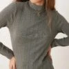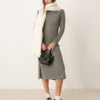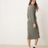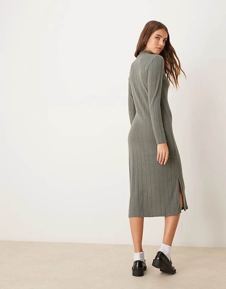 JDY Long Sleeve Turtle Neck Ribbed Midi Dress In Grey For Women